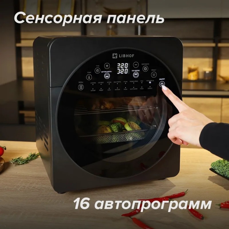 Аэрогриль Libhof AFN-317 объемом 15 л / 1700 Вт / 16 программ приготовления, таймер до 90 мин, защит