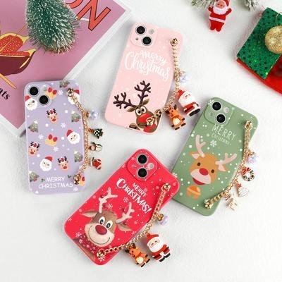 Рождественский 3D Santa Deer Цепочка Пара Чехол для телефона для iPhone 13 12 11 SE X XR XS Samsung